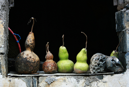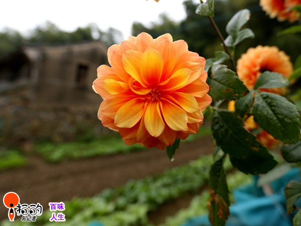 秋雨蒙蒙,山村的菜園里,鮮花點(diǎn)綴,令人流連忘返。