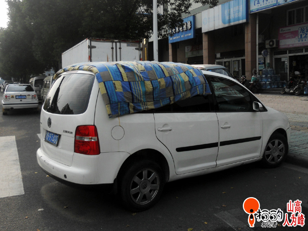 路邊車(chē)頂上,不知是天冷了蓋被子,還是天晴了曬被子……
