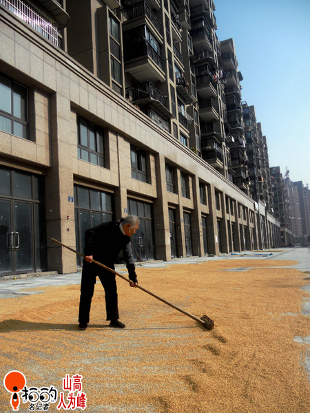 難得一個晴朗的好天氣,城市路邊的“曬谷場”上,阿婆翻推著金黃的稻谷……豐收的季節(jié),曬著太陽的芬芳。