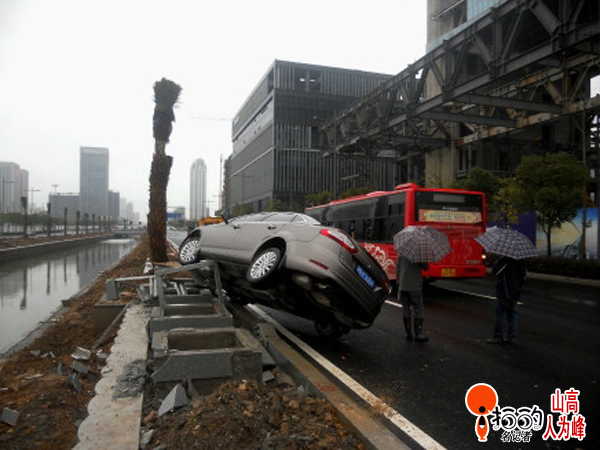 中國(guó)寧波網(wǎng)“i拍”記者山高人為峰:驚駕東路上一輛福特小車左轉(zhuǎn)彎時(shí)速度過(guò)快,被直行的756路公交車扛上了。長(zhǎng)安福特車學(xué)起了“鳥叔”當(dāng)場(chǎng)跳起了江南style……幸運(yùn)的是被路邊的石礅擋了一下,否則就要跳到河里去了。