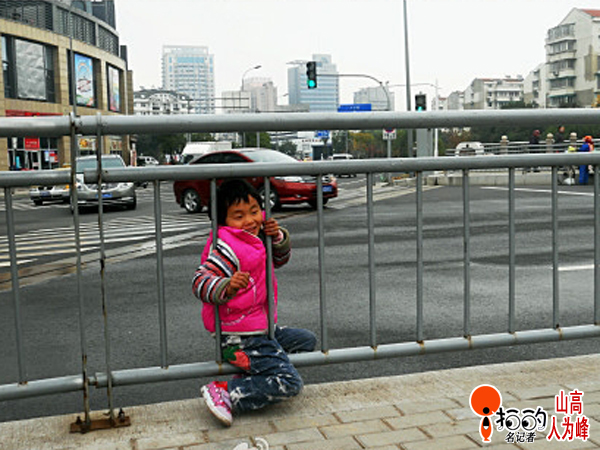 江東悅盛橋上,一小女童“鉆欄過桿”,自趣好玩……有道是:有趣不一定好玩,好奇會害死貓,路邊不安全啊!誰家的孩子還不快喊回家。