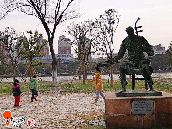 在寒冷的日子里,為你奏一曲《冬之戀》。(攝于奉化江邊,瞎子阿炳的塑像旁。)