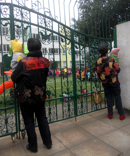 幼兒園里的燦爛童年,姥姥們抱著娃娃,站在門外觀望……有一天,娃娃們也將入園,走進這片燦爛。