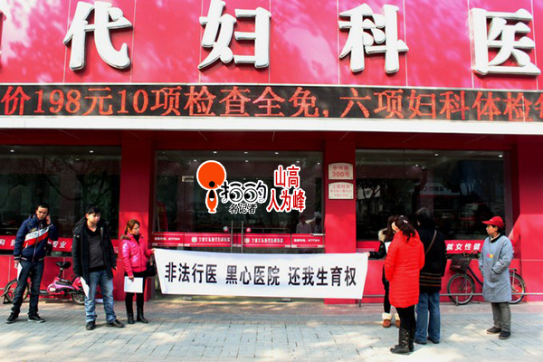 (2013年1月24日上午,江東中興路一家醫(yī)院的門口有江西人(魏13567486881)拉橫幅:要求生育權(quán)......