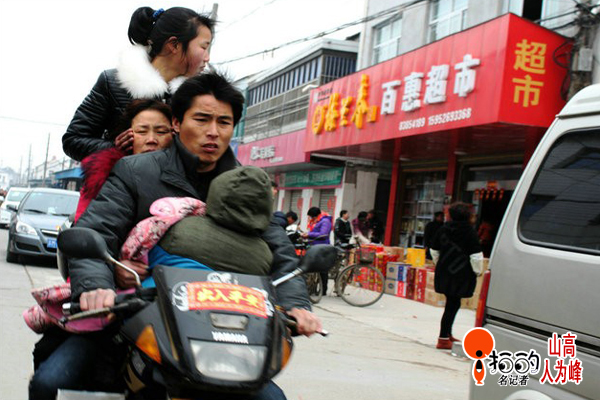 2013、2、11,11 多云。大年初二出門去拜年,一家人如此出入平安......