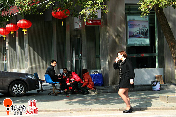 3月5日,晴。哥,路邊擦鞋,悠閑,看,三月春光,享受!
