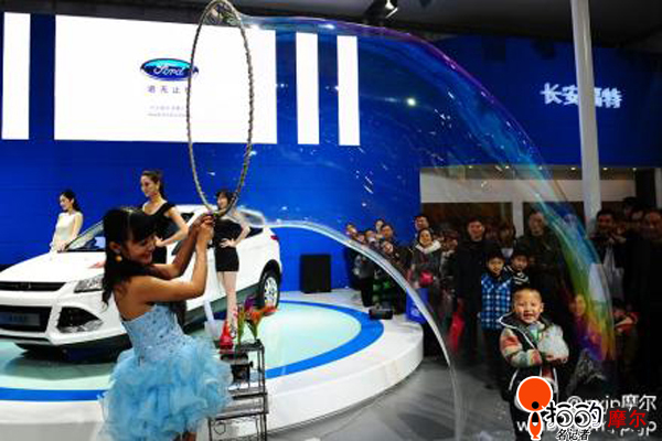 寧波車展上,原來(lái)被美女模特吸引的目光都轉(zhuǎn)移到泡泡秀孩子的身上了。