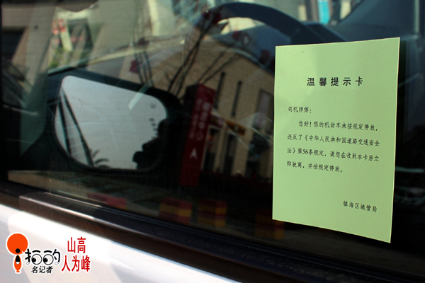 2013、3、28,晴。一張小紙單代替了罰款單,溫馨的提示,鎮(zhèn)海城管的人性化管理,很“給力”。寧波城管“溫馨的提示”有木有!