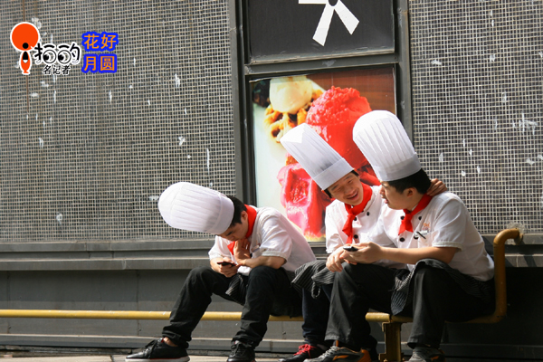 中國寧波網(wǎng)“i拍”記者花好月圓:上周末中午天氣晴好,在寧波天一廣場已經(jīng)過了午餐時間,所以各位大廚稍微得閑出來透透氣,帶著廚師帽坐在門口,一個低頭,一個彎腰,一個坐立,感覺有點試比帽子高的陣勢,我側(cè)眼看過去,真的感覺是一帽更比一帽高!