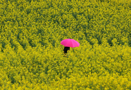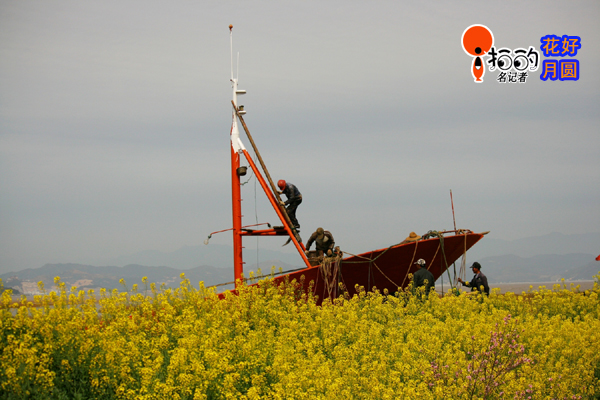 鄞州區(qū)海邊的一處漁村,岸邊野生油菜花“占領”了漁船?康耐恋亍_h遠望去,船似乎在花海里航行一般。
