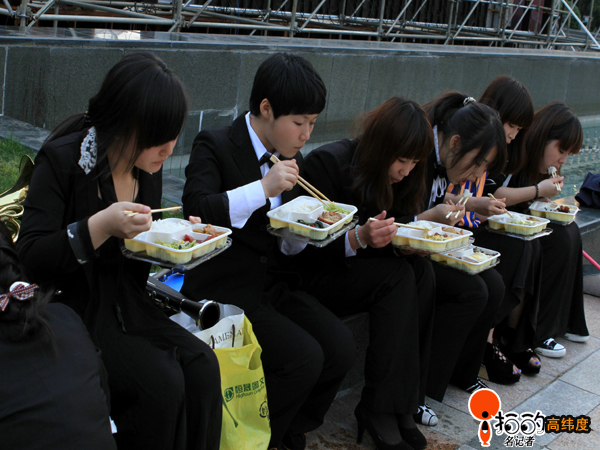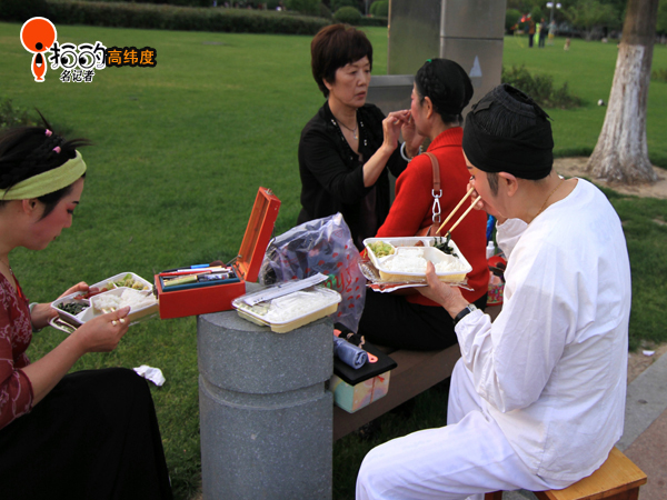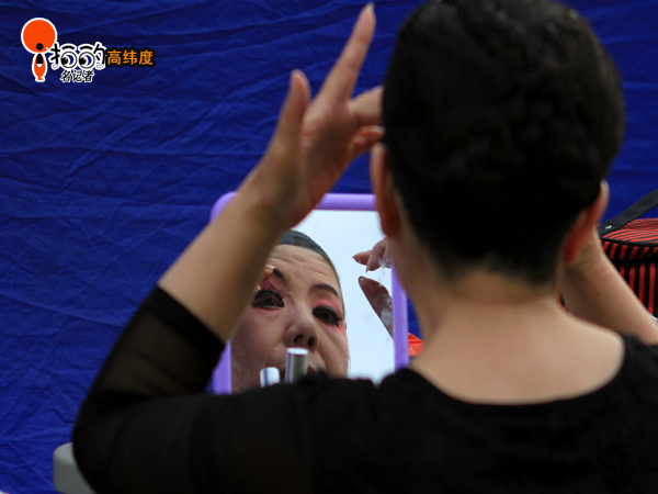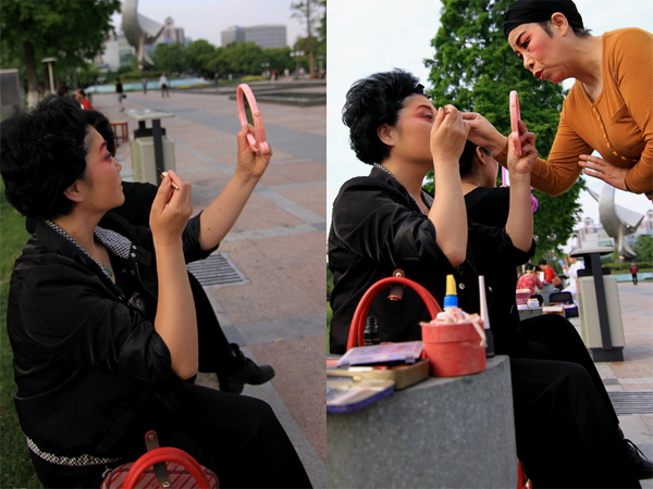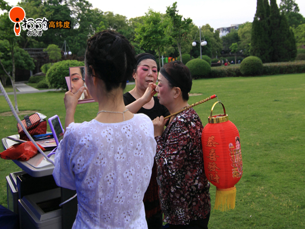 昨天下午(5月5日),中山廣場群眾文藝演出前拍攝的照片,演員們正在化妝的場景。
