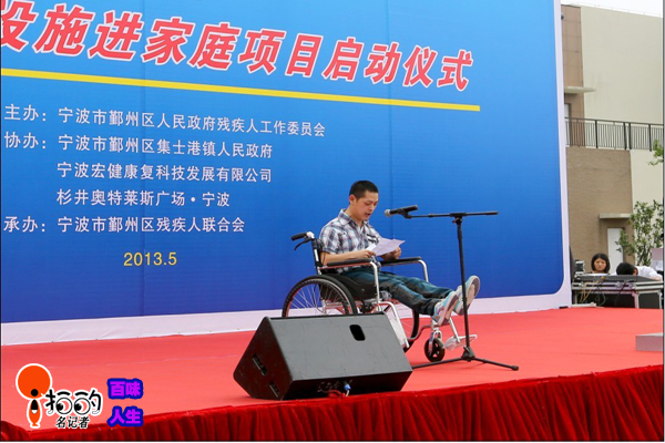 中國(guó)寧波網(wǎng)“i拍”記者百味人生:2013年5月19日,全國(guó)第23個(gè)助殘日,鄞州區(qū)殘聯(lián)在集士港奧特萊斯廣場(chǎng)舉行無(wú)障礙設(shè)施進(jìn)家庭啟動(dòng)儀式,為很多重殘人士帶來(lái)了福音。