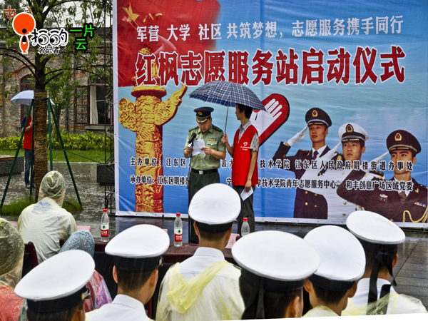 中國(guó)寧波網(wǎng)“i拍”記者一片云:江東區(qū)人武部、寧波大學(xué)科學(xué)技術(shù)學(xué)院和東海社區(qū),6月2日聯(lián)合在和豐創(chuàng)意廣場(chǎng)舉辦“軍民共建文化示范社區(qū)”暨紅楓志愿者服務(wù)站成立啟動(dòng)儀式,江東區(qū)300多名人武部官兵和學(xué)生、居民參加了儀式。