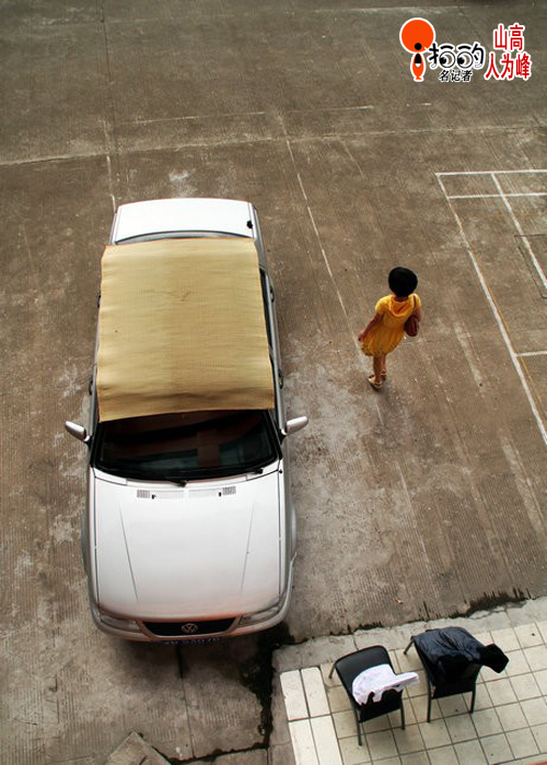 席子曬太陽(yáng),汽車遮陽(yáng)光,一舉二得。