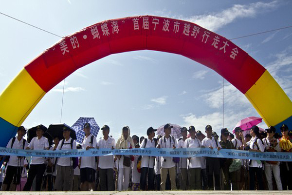 活動參與者從梅山保稅港區(qū)濱海新城的明月湖出發(fā),沿規(guī)劃建設(shè)中的“梅山灣兩岸風(fēng)情帶”經(jīng)梅山跨海大橋、“美的·蝴蝶海”高端生活居住區(qū),行走10公里后,至梅山保稅港區(qū)行政商務(wù)中心樓下,繼續(xù)參加戶外運動技能趣味賽、百米定向賽、戶外運動健康互動講座等活動。