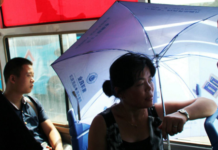 坐公交也要做好防曬措施