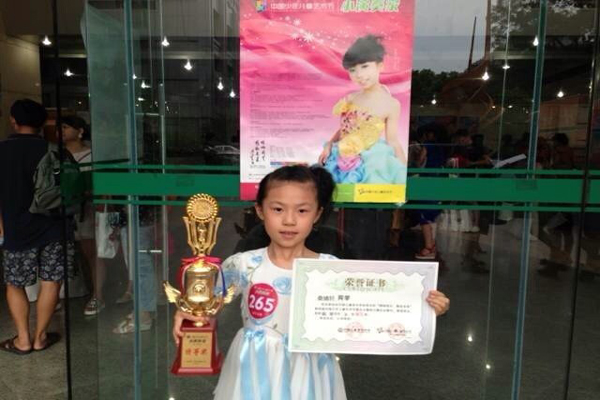 2013年6月15日,在“小演奏家”寧波賽區(qū)選拔賽中,8歲的桑婧軒小朋友獲B組第一,分?jǐn)?shù)遙遙領(lǐng)先;接著在7月7日舉行的浙江賽區(qū)比賽中又榮獲B組特等獎(jiǎng)。捧著沉甸甸的獎(jiǎng)杯,婧婧說(shuō)了一句話:“付出總會(huì)有回報(bào),這么多天的辛苦努力總算沒(méi)白費(fèi)!”