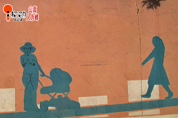 中國(guó)寧波網(wǎng)“i拍”記者山高人為峰:2013、7、22、晴。江東徐戎路墻體的繪畫(huà)上,有好事者,“畫(huà)龍點(diǎn)睛”,讓推童車的母親變成了“八戒”大媽......