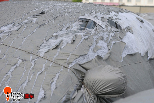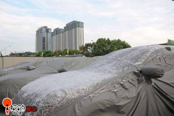 洗車店老板告訴他,這些車是洗車店隔壁汽車典當行的,每年夏天,店老板都會用遮陽罩罩住車身,防止車被曬傷。“唯獨今年,這些遮陽罩扛不住了。”