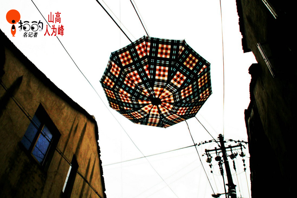 小巷里的“風(fēng)景”,一把傘,高高掛起,線、面、角,空中幾何圖騰,于是,雨停了,天晴了......