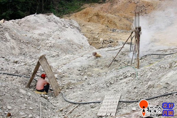 中國寧波網“i拍”記者花好月圓:一處工地上,施工人員正在鉆爆破孔作業(yè),以便填塞炸藥進行爆破土石方,雖然過了立秋,但中午氣溫依然很高,所以工人用竹排臨時搭建了一個“人”字遮陽棚,可以暫時遮陽小休片刻。