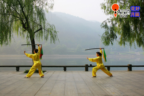 清晨在公園,市民雙劍齊舞,強健體魄,提振精神。