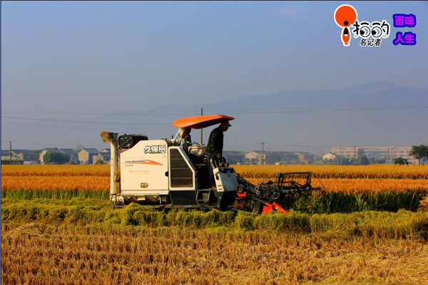 對(duì)于如今的農(nóng)民來(lái)說(shuō),農(nóng)忙不再忙,種田十分閑靜,有種安逸的感覺(jué)。滿田野的稻浪、一臺(tái)在田里轉(zhuǎn)來(lái)轉(zhuǎn)去的收割機(jī),幾個(gè)在田邊收稻谷的人,加上拿著相機(jī)的我,構(gòu)成了十分單調(diào)的秋收畫卷。