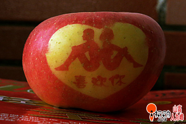 2013、12、2、晴。早晨,買到一只有“愛”的蘋果。生活,天天是呼吸,一生是思念,喜歡你,蘋果也是愛。