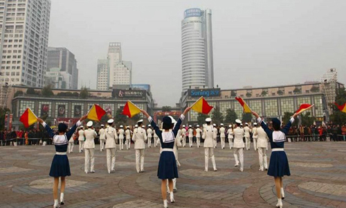 美女水兵天一廣場(chǎng)演示旗號(hào)操