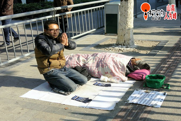 2013、12、29、晴。二天后就是“馬年”了,小伙子這是在馬路上為奶奶許"馬年"的心愿嗎?