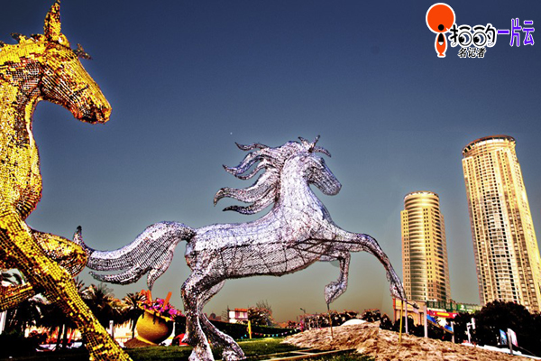 中國寧波網(wǎng)“i拍”記者一片云:近日在東門口綠地上,一組由“書藏古今,港通天下”照壁圖、“八駿圖”、“火樹銀花”等組成的靚麗工藝燈飾,吸引了許多市民的目光。其中八匹駿馬奔騰——寓意寧波馬年“馬到成功”。