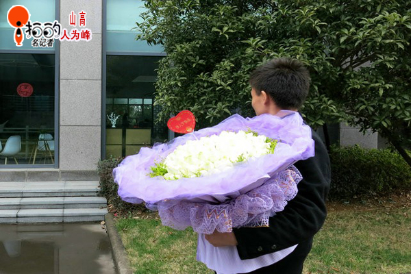 2014、2、14、多云。2014,元宵節(jié)遇上了情人節(jié),19年一遇,難得。小伙子手捧玫瑰,窗前幸福的等待......