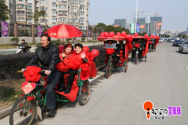 中國寧波網(wǎng)“i拍”記者笑瞇瞇:2014年,2月22日來自遼寧的小伙子畢亮用裝扮漂亮的三輪車娶北侖姑娘鮑如意,既倡導(dǎo)了綠色環(huán)保又喜慶拉風(fēng),每到一處吸引市民的眼球!