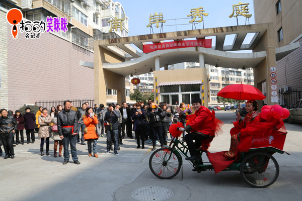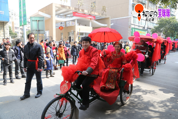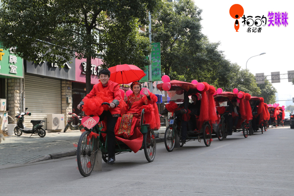 中國(guó)寧波網(wǎng)“i拍”記者笑瞇瞇:2014年,2月22日來(lái)自遼寧的小伙子畢亮用裝扮漂亮的三輪車娶北侖姑娘鮑如意,既倡導(dǎo)了綠色環(huán)保又喜慶拉風(fēng),每到一處吸引市民的眼球!