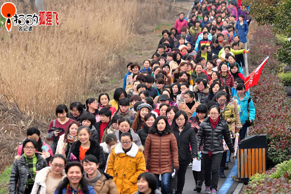 中國寧波網(wǎng)“i拍”記者狐貍飛:3月6日,寧波市1000多位女士聚集在美麗的東錢湖畔,開展由市直機(jī)關(guān)組織的“擁抱東錢湖,快樂伴我行”為主題的競走活動,以此來慶祝“三八”婦女節(jié)的到來。 胡學(xué)軍攝胡胡