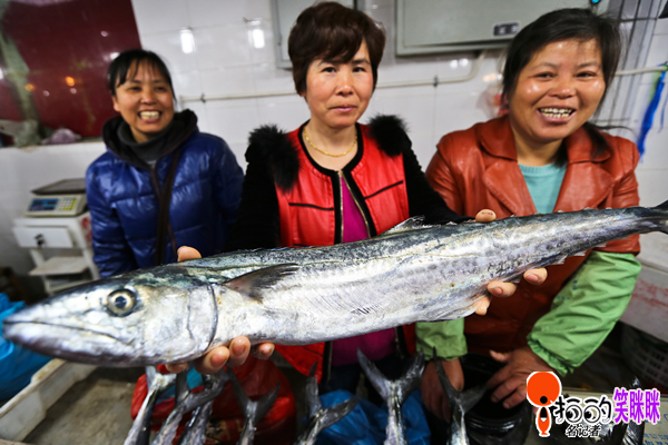 2014.3.28早,咸祥菜場里,水產(chǎn)經(jīng)營戶正在售賣馬鮫魚。每年清明前后,藍點馬鮫魚最為鮮美。