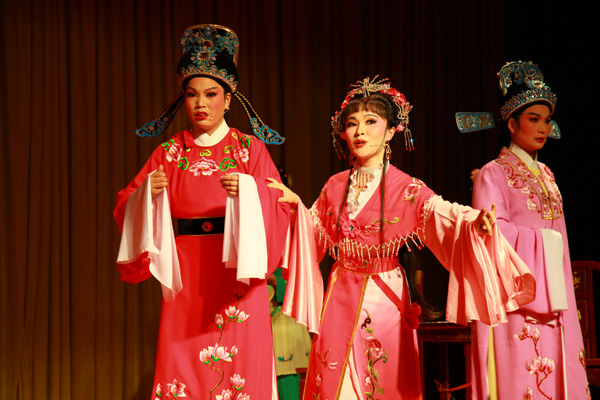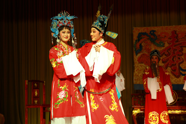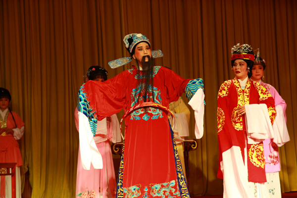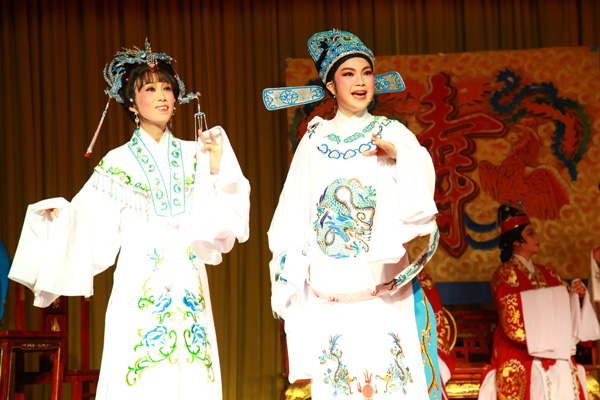 圖為賞越軒越劇社票友在演出《五女拜壽》劇照。(田春攝 )