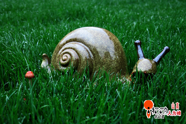 2014、4、22、陰雨。人間四月江南雨, 遙看草色綠如茵,雨潤大地春有聲,牽只蝸牛去散步。