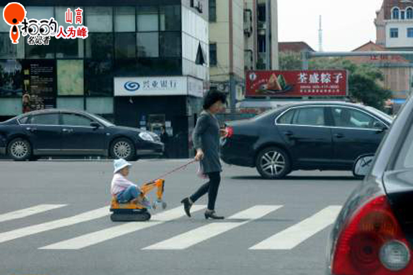 2014、5、5多云到晴。“挖掘機(jī)”開上了斑馬線......車來車往需小心。