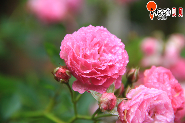 雨打月季分外嬌,那一抹粉紅,令人陶醉!