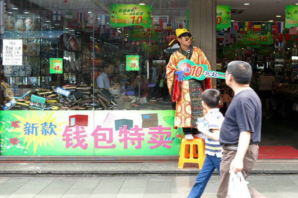 錢包特賣,生意好不好,便宜還得勤吆喝。