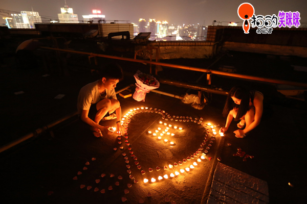 剛開始他女朋友不知道這一幕,小伙子先打電話讓她來到屋頂,小伙子的女朋友很是驚喜,他們擁抱在一起陶醉在幸福中......接著他們倆一起把剩下的蠟燭點(diǎn)燃,浪漫之情充滿了整個屋頂!