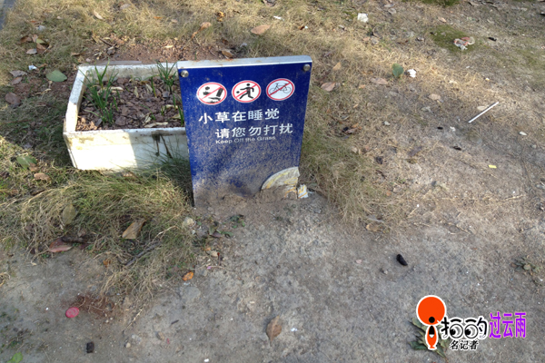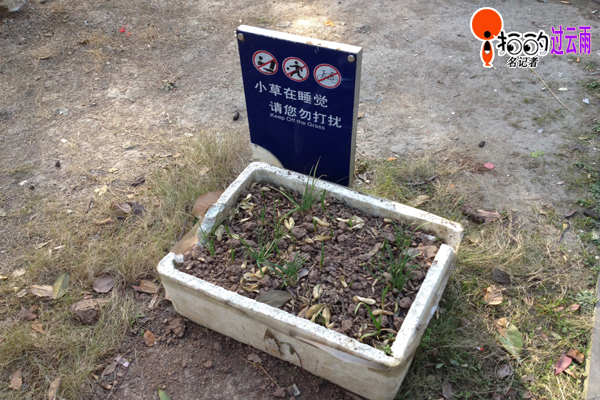 中國寧波網(wǎng)“i拍”記者過云雨:某小區(qū)的草坪提示語與現(xiàn)實(shí)情況形成了鮮明的對比,提示語周邊的草坪被踐踏得幾乎寸草不生,愛護(hù)草坪從你我做起,別讓小草無處可睡!