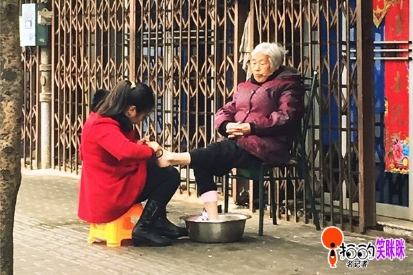 為老母親洗個(gè)腳。(2015.2.25攝于溪口鎮(zhèn)上)