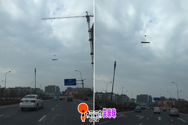 這樣的作業(yè)安全嗎?空中建筑材料高飛,下面車水馬龍!2015.4.14 攝于鄞州廣德湖路!