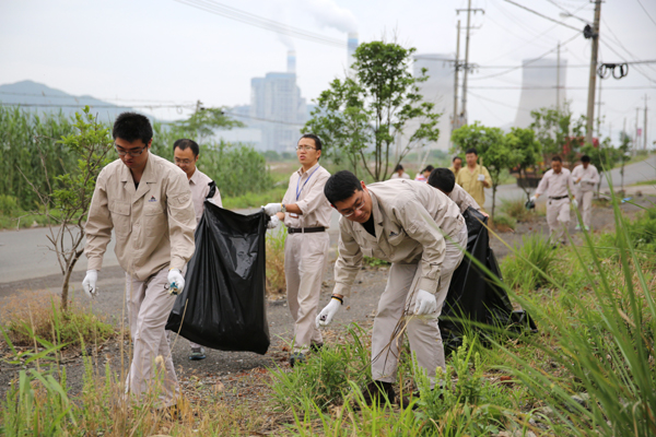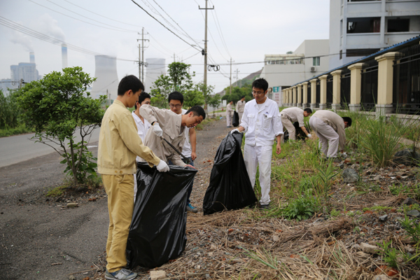 6月5日是第44個(gè)“世界環(huán)境日”,也是中國(guó)新環(huán)保法實(shí)施后的首個(gè)“環(huán)境日”,為了契合今年“踐行綠色生活”主題,增強(qiáng)員工環(huán)境意識(shí)、節(jié)約意識(shí)、生態(tài)意識(shí),形成人人、事事、時(shí)時(shí)崇尚生態(tài)文明的社會(huì)新風(fēng)尚,6月3日下午,國(guó)華寧海電廠(chǎng)組織開(kāi)展世界環(huán)境日義務(wù)勞動(dòng)活動(dòng),近80名黨員同志在電廠(chǎng)附近的生活區(qū)道路與強(qiáng)蛟鎮(zhèn)中學(xué)道路周邊進(jìn)行撿垃圾、打掃衛(wèi)生。圖為國(guó)華寧海電廠(chǎng)黨員在電廠(chǎng)附近道路上撿垃圾,為創(chuàng)建美麗家園貢獻(xiàn)一份力量。(通訊員鄭慧慧攝)