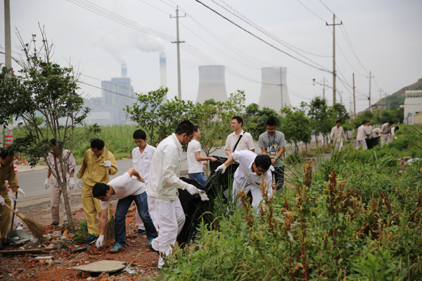 6月5日是第44個(gè)“世界環(huán)境日”,也是中國(guó)新環(huán)保法實(shí)施后的首個(gè)“環(huán)境日”,為了契合今年“踐行綠色生活”主題,增強(qiáng)員工環(huán)境意識(shí)、節(jié)約意識(shí)、生態(tài)意識(shí),形成人人、事事、時(shí)時(shí)崇尚生態(tài)文明的社會(huì)新風(fēng)尚,6月3日下午,國(guó)華寧海電廠組織開(kāi)展世界環(huán)境日義務(wù)勞動(dòng)活動(dòng),近80名黨員同志在電廠附近的生活區(qū)道路與強(qiáng)蛟鎮(zhèn)中學(xué)道路周邊進(jìn)行撿垃圾、打掃衛(wèi)生。圖為國(guó)華寧海電廠黨員在電廠附近道路上撿垃圾,為創(chuàng)建美麗家園貢獻(xiàn)一份力量。(通訊員鄭慧慧攝)