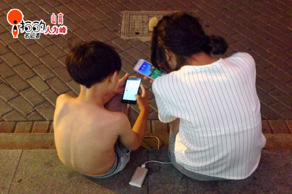 夏夜,街頭,姐弟倆,納涼不寂。