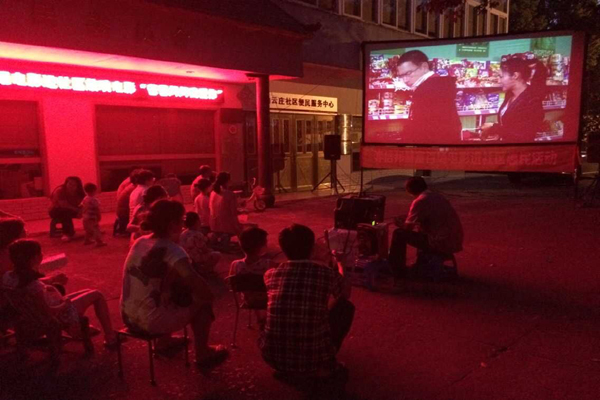 白云社區(qū)播放露天電影為居民夏夜添情趣