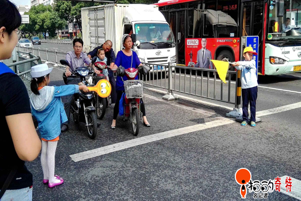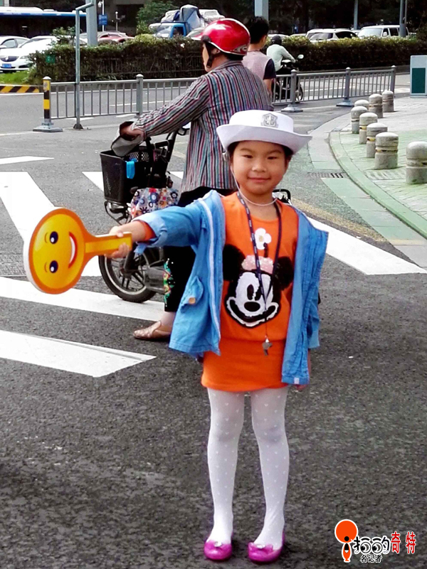 可愛的小小交警志愿者圓了“交警夢”,攝于百丈東路中興路口。